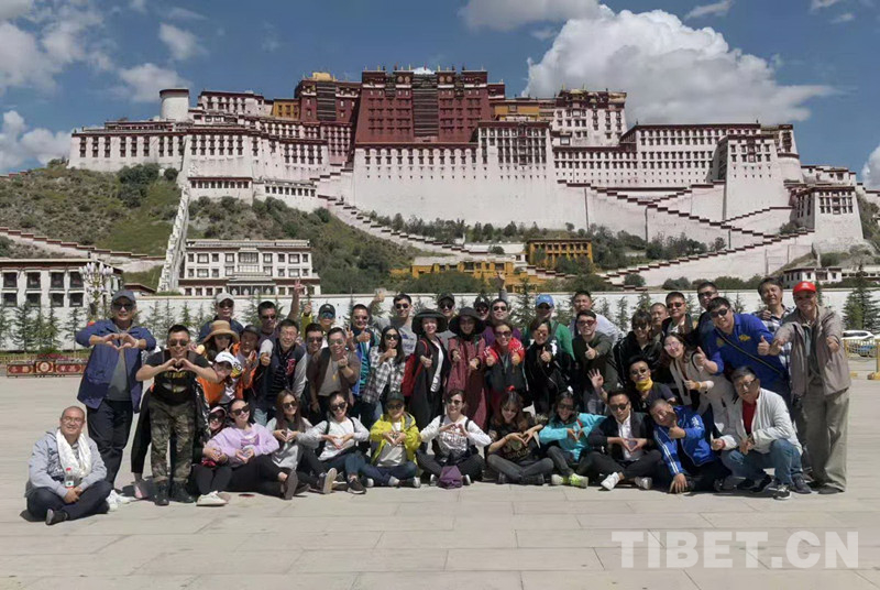 這是中國評劇院藝術(shù)家在拉薩演出結(jié)束后,來到布達拉宮前合影留念(唐召明提供,2018年9月19日攝)