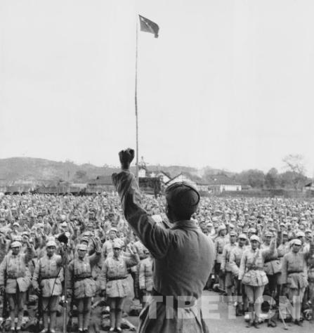 圖為1950年3月,十八軍在四川樂(lè)山舉行進(jìn)軍西藏誓師大會(huì)。