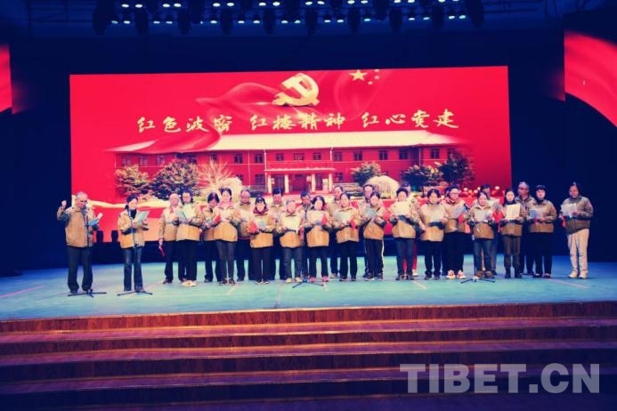 圖為十八軍后代代表團(tuán)成員參演西藏波密紅色舞臺(tái)劇《帕隆江畔的紅色記憶》