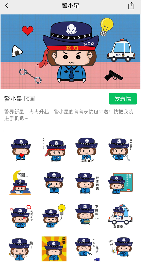 圖為龍小鳳創(chuàng)作的“警小星”表情包