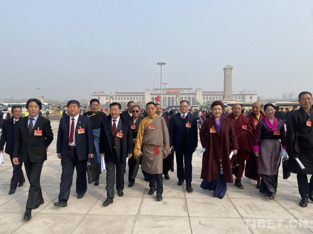 圖為扎西委員和西藏自治區(qū)代表委員們一同步入會場