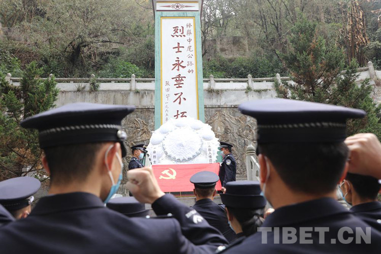 圖為西藏聶拉木出入境邊防檢查站民警到樟木烈士陵園開展清明節(jié)祭奠革命先烈活動(dòng) 攝影:索朗次仁