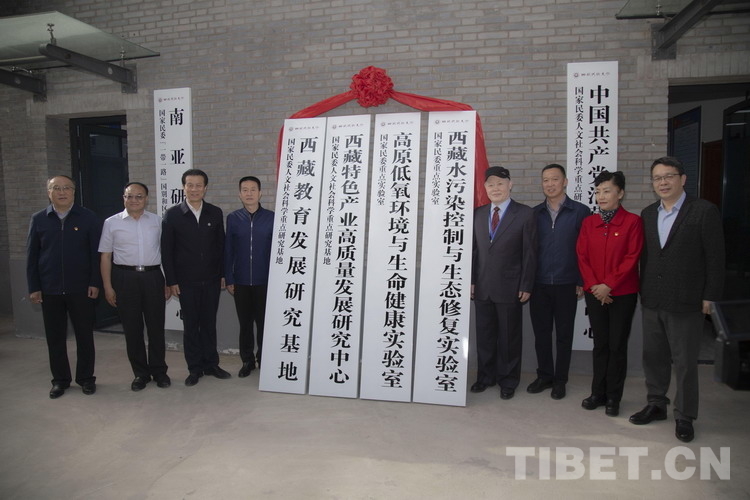 研討會(huì)開(kāi)幕式之前,與會(huì)領(lǐng)導(dǎo)為西藏教育發(fā)展研究基地、西藏特色產(chǎn)業(yè)高質(zhì)量發(fā)展研究中心、高原低氧環(huán)境與生命健康實(shí)驗(yàn)室、西藏水污染控制與生態(tài)修復(fù)實(shí)驗(yàn)室同時(shí)掛牌揭幕。大會(huì)主旨發(fā)言之后,西藏民族大學(xué)黨委常委、副校長(zhǎng)史本林、西藏駐格爾木辦事處(藏青工業(yè)園區(qū))黨委書(shū)記邱川共同簽訂雙方合作框架協(xié)議,旨在加強(qiáng)科研交流合作,共同為西藏社會(huì)高質(zhì)量發(fā)展做出貢獻(xiàn)。