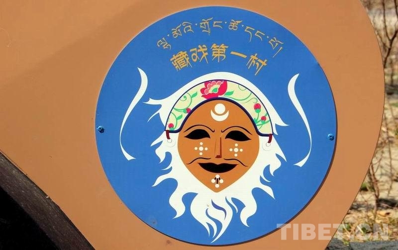 圖為扎西曲登社區(qū)引以為豪的“藏戲第一村”標(biāo)志 攝影:劉莉