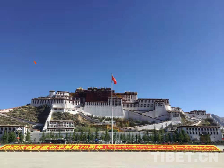 出席當(dāng)天儀式的干部職工代表,解放軍和武警部隊官兵代表,學(xué)校師生、離退休干部職工、僧尼和群眾代表1000余人。10時整,在軍樂隊伴奏下,西藏黨政軍負責(zé)人同西藏各界代表一起高唱中華人民共和國國歌,國歌聲在布達拉宮廣場回蕩。