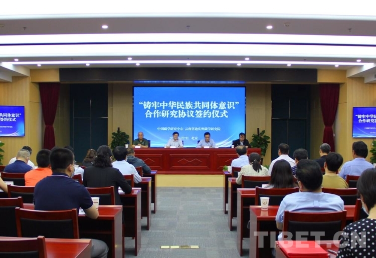 中國西藏網訊 6月7日,中國藏學研究中心與云南省迪慶州藏學研究院(迪慶州鑄牢中華民族共同體意識研究教育實踐中心)合作開展“鑄牢中華民族共同體意識”研究協議簽約儀式在北京舉行。中國藏學研究中心黨組書記陳宗榮、迪慶州藏學研究院黨組書記和樹軍分別致辭。中國藏學研究中心總干事鄭堆主持儀式,簽約雙方相關部門負責人及部分專家學者參加了儀式。