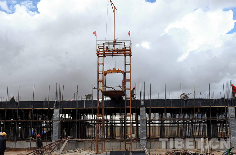 這是中國(guó)石化所援建的班戈縣小學(xué)大樓正在施工(唐召明2009年攝)