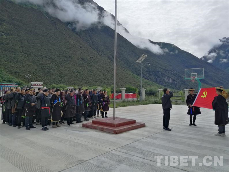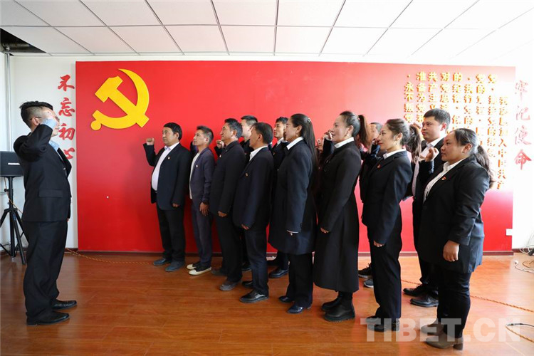 圖為林芝市工布江達(dá)縣干部群眾重溫入黨誓詞 攝影:公布