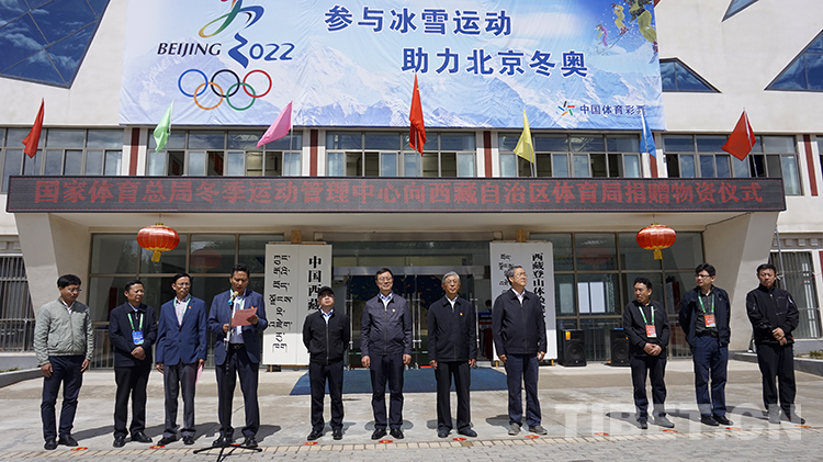 圖為國家體育總局冬季運(yùn)動(dòng)管理中心向西藏自治區(qū)體育局捐贈(zèng)物資儀式現(xiàn)場(chǎng) 攝影:王媛媛