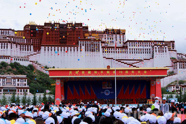 8月19日,西藏自治區(qū)2萬多名各族干部群眾歡聚在布達(dá)拉宮廣場,參加慶祝西藏和平解放70周年大會(huì)。