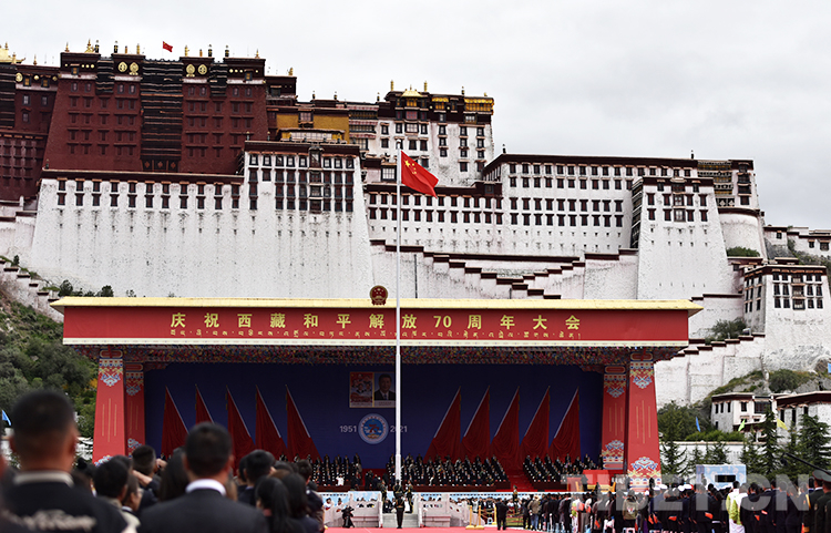 圖為8月19日上午,西藏各族干部群眾歡聚在布達(dá)拉宮廣場,熱烈慶祝西藏和平解放70周年 攝影:王媛媛
