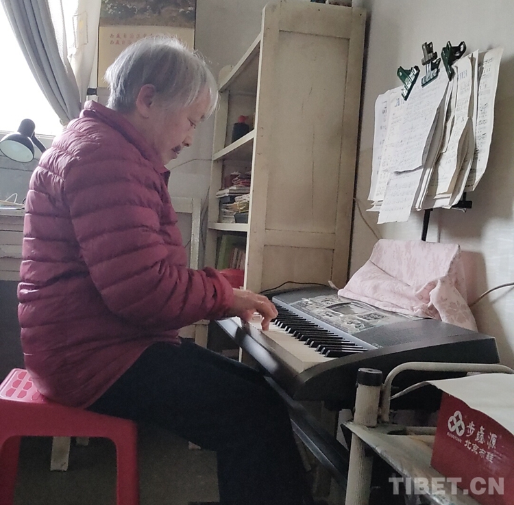 鄧親和,四川省樂山市犍為縣人,出生于1931年,十八軍52師文工隊(duì)?wèi)?zhàn)士。1950年,鄧親和19歲,正值高三,成績優(yōu)異的她不顧家人的勸阻,毅然放棄了繼續(xù)讀書的機(jī)會,踏上了解放西藏的征途,從此在雪域高原上留下了人生最寶貴的青春足跡。初見鄧?yán)蠋?,她親切和藹的樣子,給我留下深刻的印象。老人雖然退休多年,但是她的生活仍然格外豐富。據(jù)老人講,她的作息時間比較規(guī)律,堅持做八段錦鍛煉身體,自己做家務(wù),空閑時間還會看書看報、提筆練字,或是彈彈電子琴,唱唱歌等等,生活豐富多彩。此刻,我從她的身上看到了年輕時鄧親和的神態(tài)與風(fēng)采。回首那段崢嶸歲月,翻雪山、過草地、穿峽谷、涉冰河……面臨高山缺氧的生命危險,趟越急流冰河的刺骨鉆心,爬冰臥雪、忍饑耐寒,遇艱險不畏其險,歷困難不以為難,樁樁件件好似一首首雋永的絢麗詩篇,常在她記憶里回蕩,令人難忘。