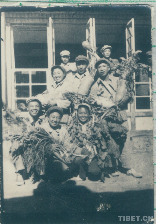 入城后,文工隊(duì)分別住在江孜城郊強(qiáng)查洞幾處民房里。初到江孜,后方給養(yǎng)一時運(yùn)不上來,蔬菜等主副食又得不到有效供給,西藏只有土豆、元根,他們還不能隨便采購。西藏工委和十八軍黨委遵照毛主席“進(jìn)軍西藏,不吃地方”的指示,提出“搞好生產(chǎn)是進(jìn)藏部隊(duì)長期的一項(xiàng)中心任務(wù)”,文工隊(duì)同分工委全體工作人員一道在帕拉開墾荒地、播種糧食。天寒地凍又缺少農(nóng)具,用鐵锨鏟鏟不動,用十字鎬挖,一鎬下去,直冒火星。同志們想方設(shè)法烤凍土,翻起一塊一塊像鐵板一樣的凍土,晾在太陽下曬,然后再一鎬一鎬的砸碎、耙平,沒有耕牛,男同志就扛起繩拉犁,女同志平地耙地。江孜海拔4000米以上,平日里都缺氧,此時再加上勞累更是頭暈?zāi)X脹,上氣不接下氣,可是他們充分發(fā)揚(yáng)“不怕苦不怕累”的精神,終于開出一片荒地、撒下種子、收獲了自己種下的糧食,做到了一部分自給,在西藏群眾中產(chǎn)生了很好的影響。文工隊(duì)還在住地附近開辟了一塊地種菜,用實(shí)際行動徹底粉碎了西藏上層反動集團(tuán)妄圖用糧食困住解放軍進(jìn)而餓走解放軍的美夢。