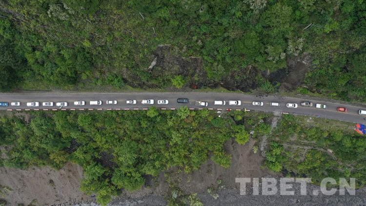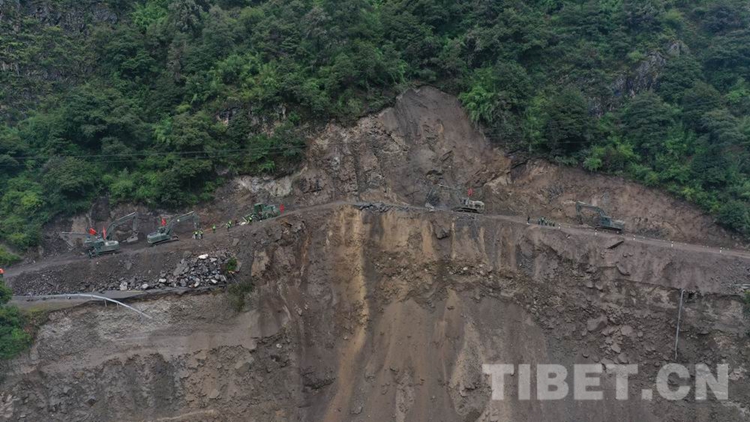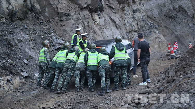 中國西藏網(wǎng)訊 8月28日18時許,經(jīng)過武警第二機動總隊某支隊官兵連續(xù)5天的艱苦鏖戰(zhàn),搶修出一條長215米的便道,使因路基垮塌造成國道318線西藏自治區(qū)林芝波密境內(nèi)段斷通的道路成功恢復(fù)通行,可供小型車輛單向通行。在武警官兵的指揮下,滯留兩端的車輛有序帶隊安全通過。