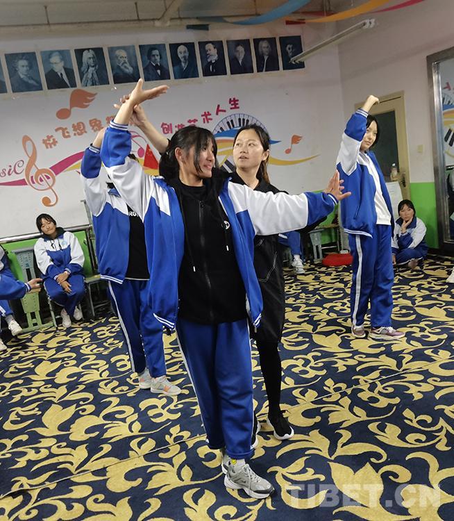 “剛開始,動作還是很有難度的,很難控制表情和走步?!卑赚斍f,她們是先練習漢語版的黃梅戲劇目,然后再學習藏語的。老師教得細,自己學得勤,很快就對黃梅戲不陌生了。