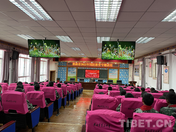 當(dāng)日下午,邀請(qǐng)那曲軍分區(qū)干部走進(jìn)校園為那曲市二中學(xué)生開(kāi)展一次國(guó)防教育專(zhuān)題講座。專(zhuān)題講座開(kāi)始前,首先由七年級(jí)格桑次仁和巴桑旺姆同學(xué)為大家深情朗誦《請(qǐng)黨放心 強(qiáng)軍有我》,一首詩(shī)詞朗誦把大家緩緩帶入課堂。由那曲軍分區(qū)唐鵬同志運(yùn)用豐富的知識(shí)和大量史實(shí),圍繞國(guó)防教育的重要意義等內(nèi)容為大家作了一場(chǎng)精彩的講座,利用媒體視頻、圖片資料給師生們講解了我國(guó)國(guó)防現(xiàn)狀、國(guó)防建設(shè)的重要作用,讓學(xué)生掌握基本軍事知識(shí)技能,加深對(duì)軍隊(duì)的認(rèn)識(shí)和理解,整個(gè)講座旁征博引,數(shù)據(jù)翔實(shí),觀點(diǎn)敏銳,既有清晰的歷史脈絡(luò),又有具體事件的介紹,在同學(xué)中引起了強(qiáng)烈共鳴。