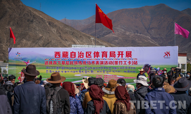 10月13日,由西藏自治區(qū)體育局主辦、西藏自治區(qū)社會和民族傳統(tǒng)體育指導(dǎo)管理中心和墨竹工卡縣人民政府承辦的西藏自治區(qū)“三送”暨送體育下基層民族傳統(tǒng)馬術(shù)表演在拉薩市墨竹工卡縣精彩上演。西藏民族傳統(tǒng)馬術(shù)隊運動員們用精湛的技藝,為觀眾獻(xiàn)上一場視覺盛宴,吸引了墨竹工卡縣及周邊6000余群眾前來觀看。