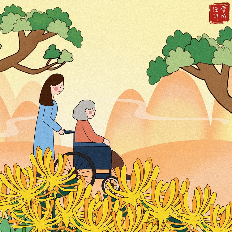 人生易老天難老,歲歲重陽,今又重陽?!罢l言寸草心,報得三春暉”“老吾老以及人之老”“天下之本在家”,尊敬老人、孝敬父母,敬老孝老正成為新時代中國的生動生活場景。(中國西藏網(wǎng) 文/王智霖 繪/李絲雨)