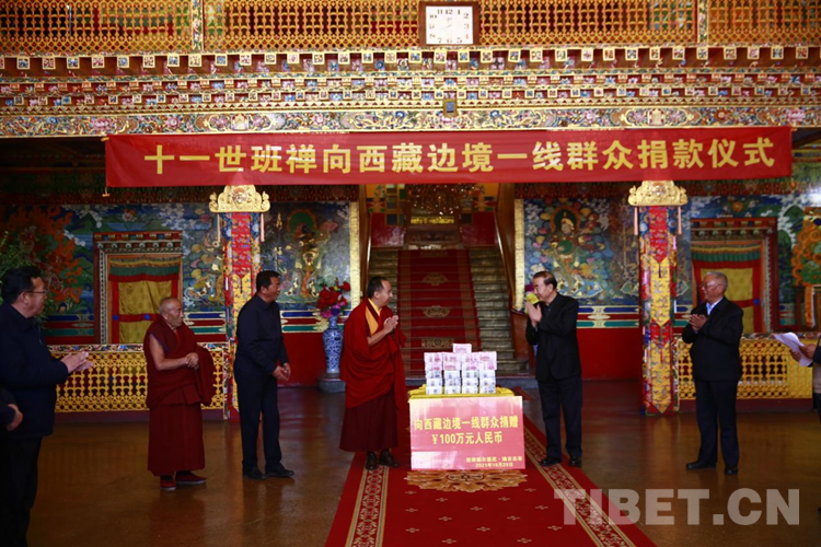 秉承佛教慈悲濟(jì)世精神,班禪向來(lái)心系蒼生、善信天下。在考取“嘎欽”佛學(xué)學(xué)位后,班禪決定將社會(huì)各界所贈(zèng)與的鼓勵(lì)禮金回饋社會(huì),于10月29日在日喀則市德慶格桑頗章捐贈(zèng)100萬(wàn)元,用于幫助西藏邊境一線群眾提升和改善生產(chǎn)生活。西藏自治區(qū)黨委常委、統(tǒng)戰(zhàn)部長(zhǎng)旦科作為代表接受捐贈(zèng)。