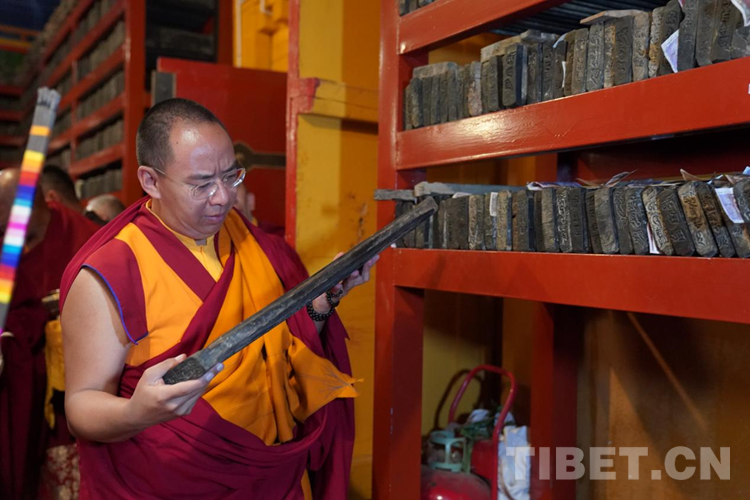 圖為班禪在納塘寺參觀印版 攝影:王淑