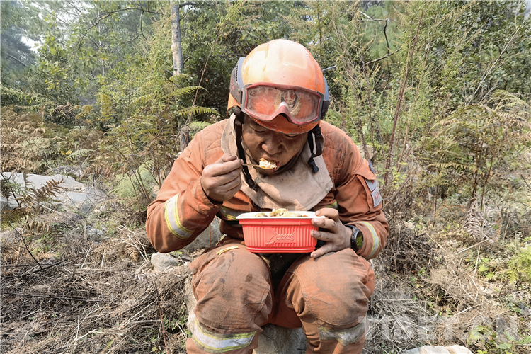 昌都市森林消防支隊卡若區(qū)中隊負責清理火場南側面積最廣的區(qū)域,由于情況緊急,火場坡度接近80°,加上每名消防員負重20公斤以上,指戰(zhàn)員們出發(fā)時只帶了滅火裝備和少量的飲用水,忍饑挨餓,每日連續(xù)奮戰(zhàn)將近10小時以上。期間,他們婉拒了好幾撥主動來送水、送干糧的群眾。