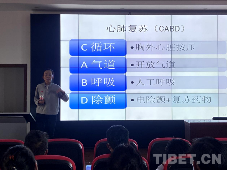 義診之后,北京第七批援藏醫(yī)療隊代表劉海霞醫(yī)生對社區(qū)衛(wèi)生院醫(yī)護人員進行了心肺復(fù)蘇等急救培訓(xùn),參與義診的專家、醫(yī)生就社區(qū)衛(wèi)生院醫(yī)護人員在日常工作中所遇到的臨床問題進行解答。