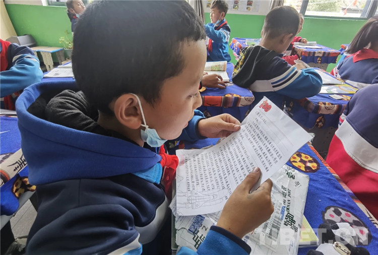 浪卡子縣卡熱鄉(xiāng)完小學(xué)生參與“滇藏、湘藏千里傳書信、學(xué)黨史”活動。圖片由浪卡子縣供圖