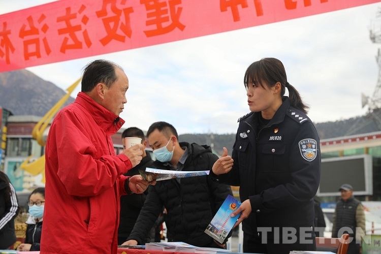 圖為林芝邊境管理支隊(duì)法制處民警正向群眾宣講法律知識(shí)
