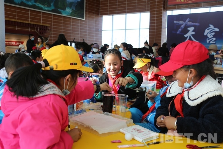 西藏自治區(qū)拉薩市西藏自然科學(xué)博物館內(nèi),在熱巴舞的歡聲律動(dòng)和“液氮火箭”科普實(shí)驗(yàn)的“飛天掠影”中,來自拉薩市第一小學(xué)和拉薩江蘇實(shí)驗(yàn)中學(xué)的80名學(xué)生共同觀看了“天宮課堂”連線直播,聆聽來自空間站的親切聲音,與中國(guó)空間站內(nèi)的航天員“零距離”同步“天宮課堂”科學(xué)實(shí)驗(yàn)操作。