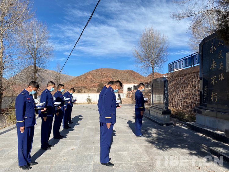 圖為貢覺縣駐防分隊(duì)祭奠英烈后重溫入黨誓詞