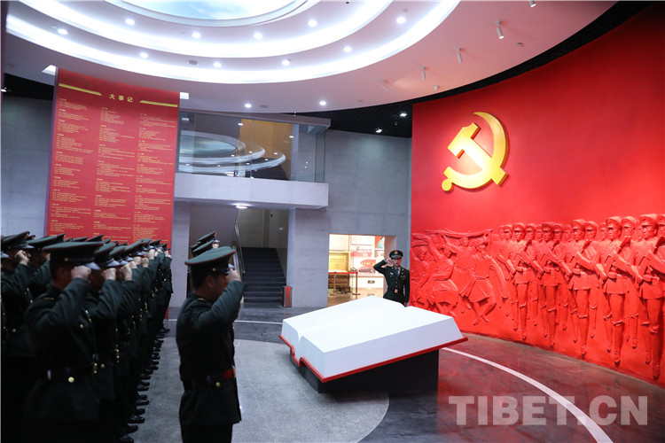 2021年6月30日,為慶祝中國(guó)共產(chǎn)黨成立100周年,該團(tuán)組織官兵參觀西藏軍區(qū)軍史陳列館,開(kāi)展黨史學(xué)習(xí)教育,重溫入黨誓詞,向革命先輩致敬。