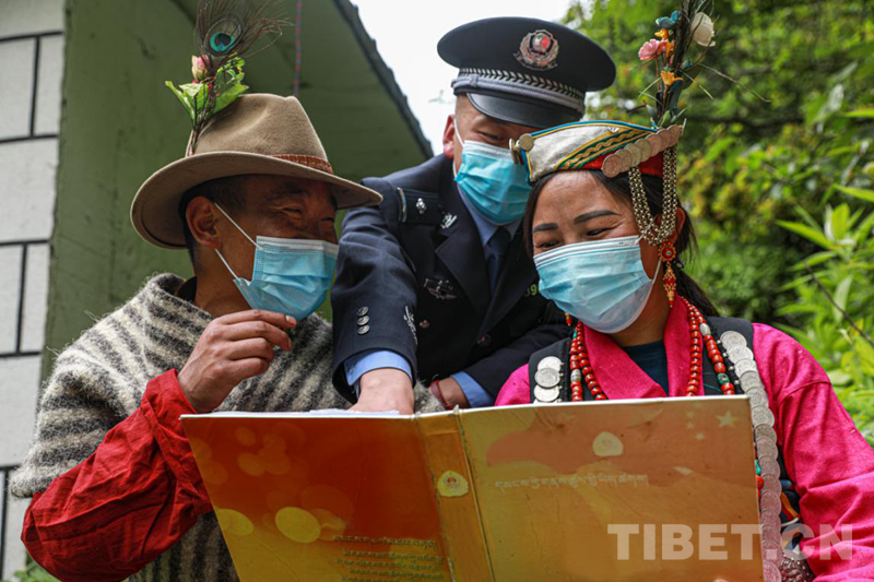 圖為陳塘邊境派出所民警給夏爾巴群眾宣講政策