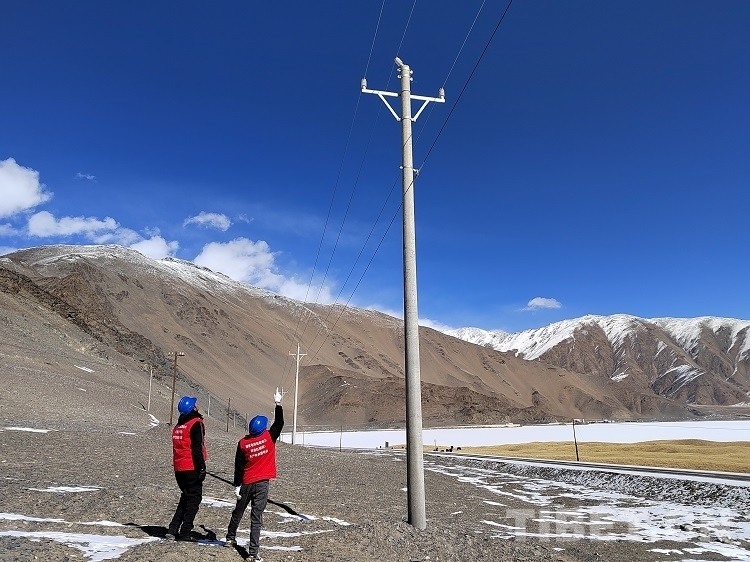 圖為國(guó)網(wǎng)西藏阿里公司變電中心人員對(duì)阿里巴獅線開(kāi)展巡視巡檢工作 攝影:次旦多吉