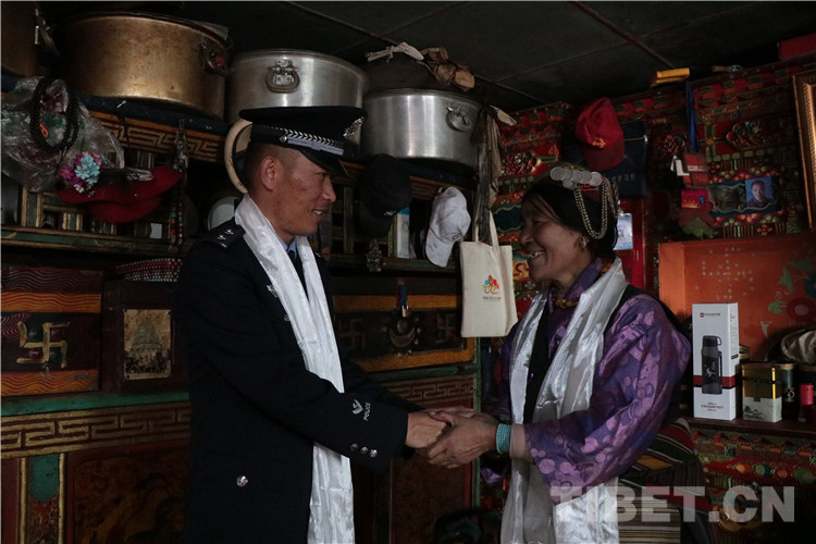 每年除夕開展走訪慰問是派出所必不可缺的工作,民警們大包小包提著油、米、糌粑等日常生活用品,走在他們?cè)偈煜げ贿^的蜿蜒小道上,去邀請(qǐng)村里的孤寡老人和獨(dú)自留守在家中的夏爾巴群眾到派出所里共度除夕。