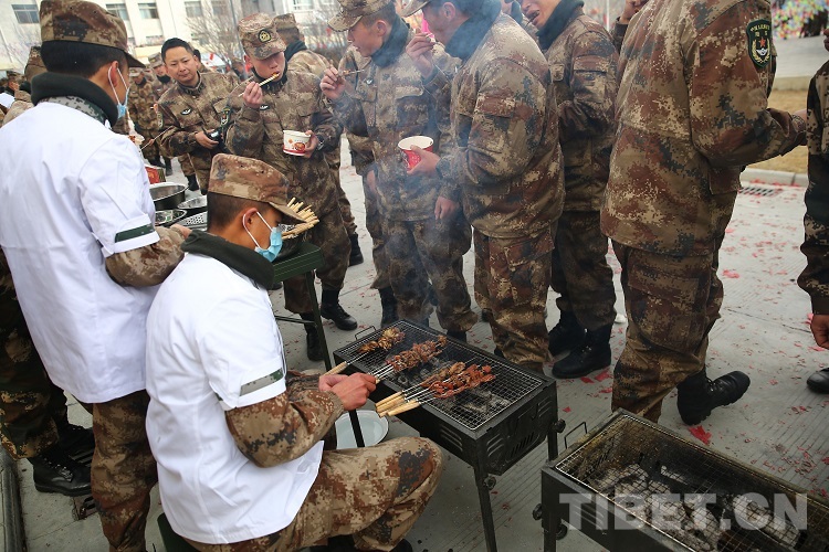 民以食為天,這么喜慶熱鬧的場面怎么少得了吃呢?據(jù)了解,本次“小吃一條街”一共設(shè)有蛋撻、狼牙土豆、燒烤、小酥肉、鮮肉餅、冰糖葫蘆、烤羊肉串等十幾種由官兵親手制作的小吃。官兵們及來隊(duì)家屬和軍娃來回穿梭在各個(gè)“門店”之間,盡情地享受著“舌尖上的美味”。