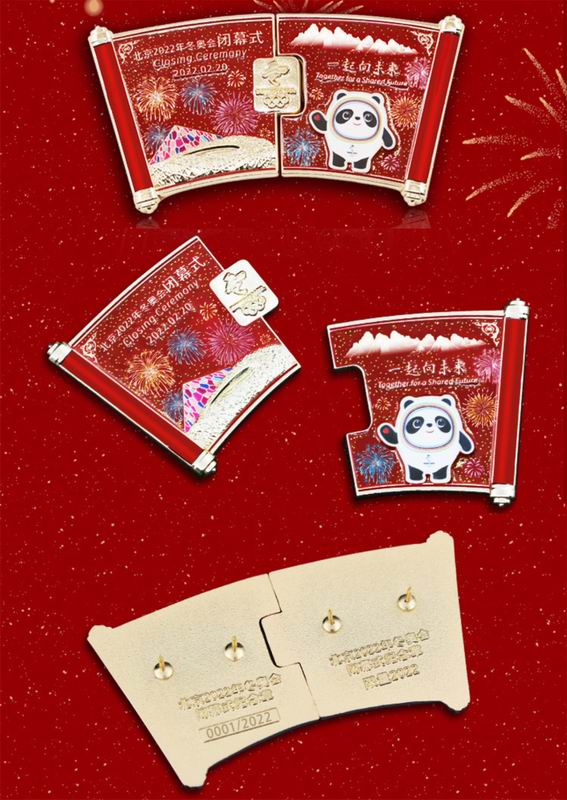 “來日方長” 北京2022年冬奧會閉幕式紀念徽章一套兩枚,拼合在一起就形成了一個漂亮的卷軸,寓意雖然北京冬奧會圓滿閉幕,但奧運精神薪火相傳,來日方長。徽章材質(zhì)為鋅合金,采用釉面彩繪、立體浮雕、立體分層等工藝,每個產(chǎn)品均雕刻獨立序列號,高5cm、寬9.3cm、厚3mm,紙盒包裝,限量2022套。