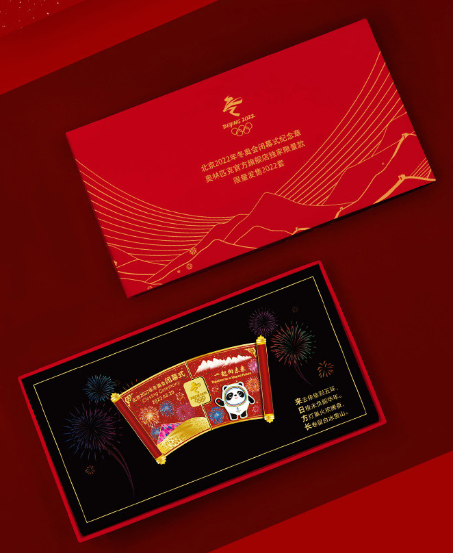 圖為“來日方長”北京2022年冬奧會閉幕式紀念徽章喜慶好看的包裝盒 圖片來源:奧林匹克官方旗艦店