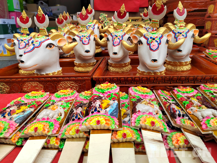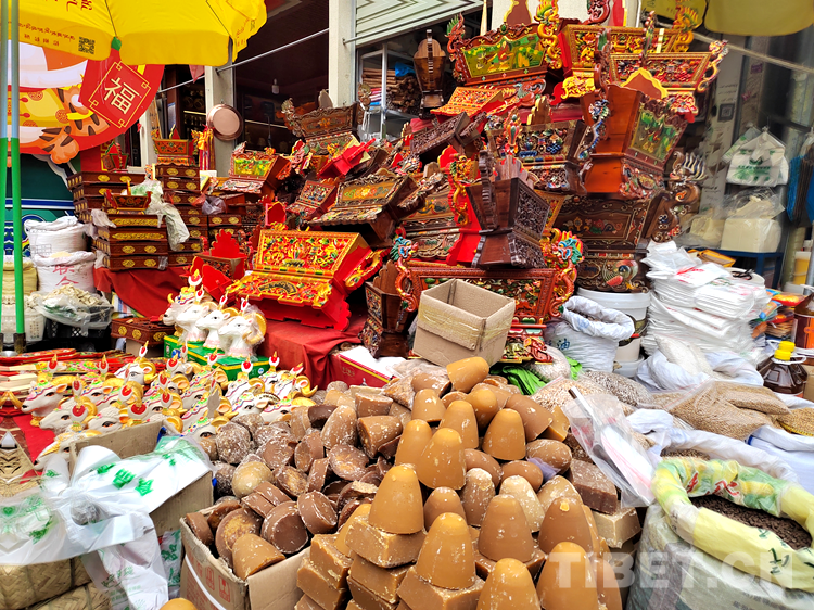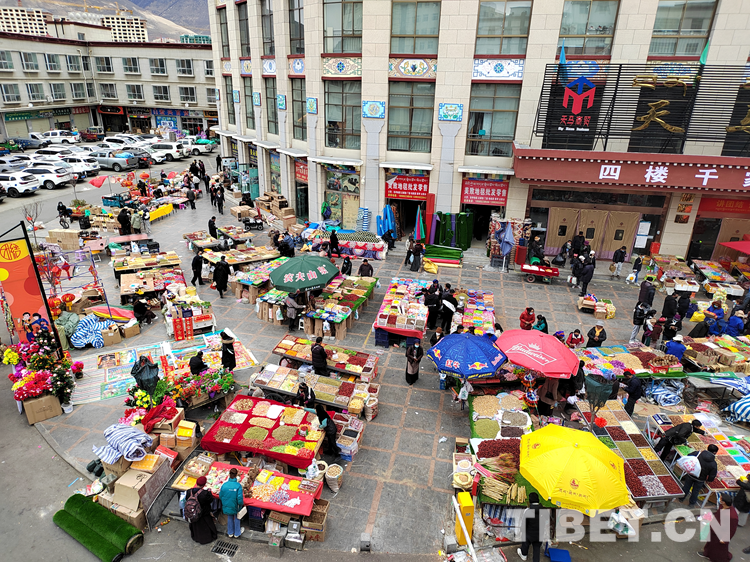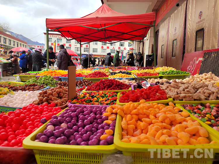 拉巴頓珠正忙碌著擺售賣年貨。喧鬧聲、音樂聲交織在一起,奏響了迎接新年的華美樂章。拉巴頓珠告訴記者,賣自家制作的年貨有幾天了,生意好得很。