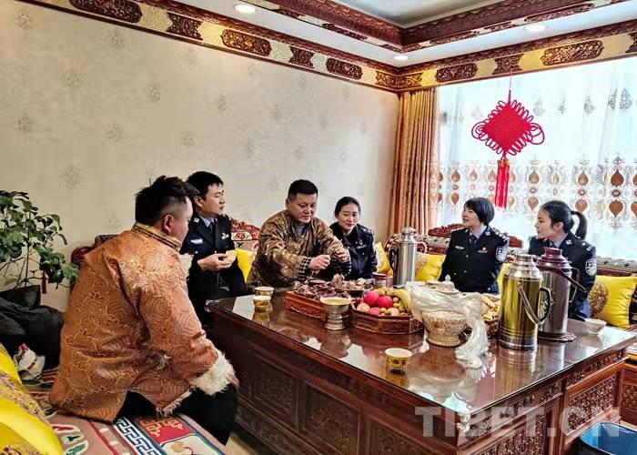 在藏歷水虎年到來之際,拉薩出入境邊防檢查站3名民警利用勤務間隙,帶著精心準備的節(jié)日慰問品前往結親民警尼瑪拉姆家中拜年。熱情好客的尼瑪拉姆一家用特色風干肉、煮牛肉、卡塞、時鮮水果等美食款待了前來結親的民警們。