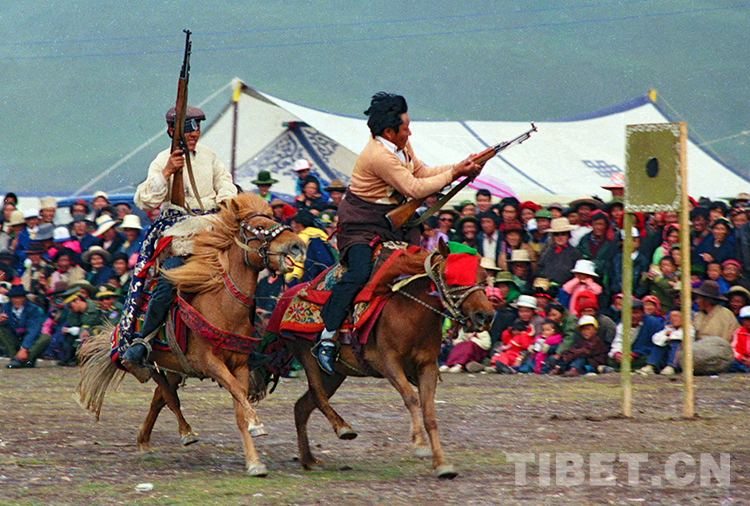 這是在那曲賽馬會(huì)上的跑馬射擊比賽(唐召明1987年攝)