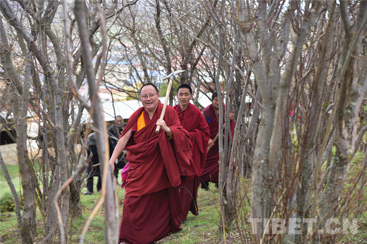 圖為達扎委員帶領(lǐng)達扎寺僧人和當(dāng)?shù)厝罕娭矘湓炝?/p>