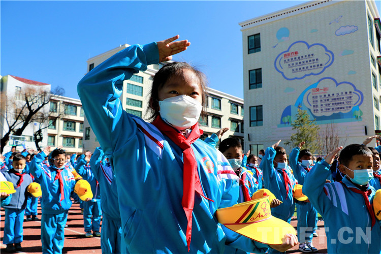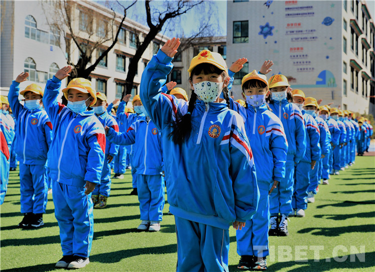 中國西藏網(wǎng)訊 太陽伴隨著初春的微風(fēng)冉冉升起。新的學(xué)期又開始了,3月10日早上,風(fēng)和日麗,陽光明媚,學(xué)生們穿著整潔的校服,戴著鮮艷的紅領(lǐng)巾,來到學(xué)校,興高采烈地期待著新學(xué)期特殊的升旗儀式。應(yīng)拉薩市第一小學(xué)邀請,拉薩警備區(qū)某團(tuán)官兵早早出發(fā)前往學(xué)校,官兵們整齊的步伐、筆挺的身影、颯爽的英姿感染著一小學(xué)子。