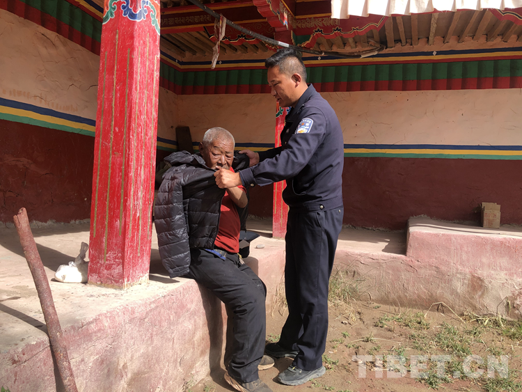 旦增桑布在參加“百萬警進千萬家”的活動時,看到南木加爺爺、卓瑪奶奶等三位孤寡老人的生活困境,主動承擔起照看老人的責任,并經(jīng)常抽出時間來噓寒問暖、打掃衛(wèi)生、送醫(yī)救治,并結(jié)成了幫扶對子。