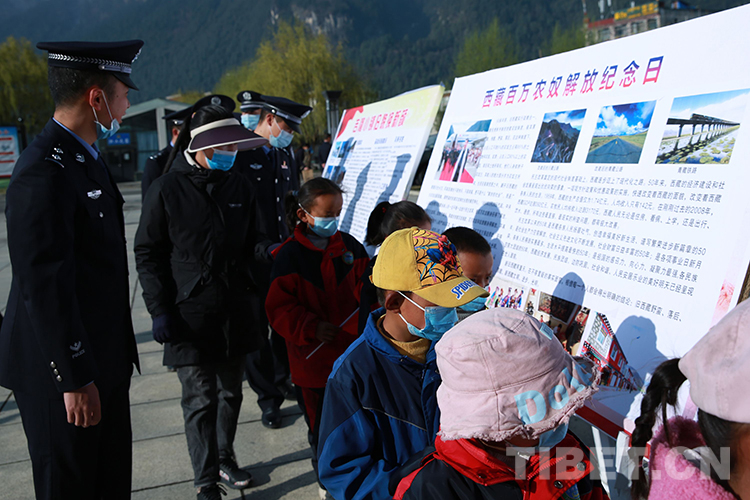 圖為觀看展板上關于“西藏百萬農(nóng)奴解放紀念日”的介紹