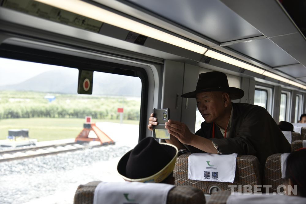 圖為2021年6月25日復(fù)興號高原雙源動(dòng)力集中動(dòng)車組即將抵達(dá)西藏林芝站,乘客拍照 攝影:王媛媛