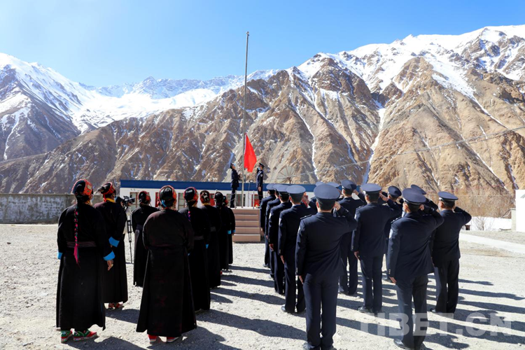 上午10時(shí)整,普蘭出入境邊防檢查站斜爾瓦執(zhí)勤點(diǎn)舉行紀(jì)念西藏百萬農(nóng)奴解放63周年“升國(guó)旗、唱國(guó)歌”儀式。參加儀式的民警整齊列隊(duì)、邊民群眾身著節(jié)日盛裝,大家共唱國(guó)歌,表達(dá)著對(duì)五星紅旗的崇高敬意和對(duì)中國(guó)共產(chǎn)黨的感恩之情。