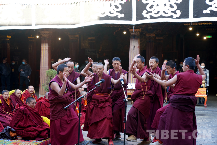 圖為西藏自治區(qū)2022年度藏傳佛教學(xué)經(jīng)僧人考核晉升格西拉讓巴學(xué)位立宗答辯暨頒證儀式現(xiàn)場(chǎng) 攝影:拉姆