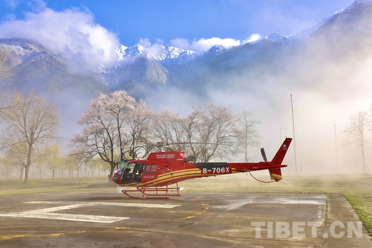 中國(guó)西藏網(wǎng)訊 云遮霧繞的早晨,青山如黛,桃花正盛。國(guó)網(wǎng)通航公司SG1151直升機(jī)機(jī)組的王磊卻沒(méi)時(shí)間欣賞這如畫(huà)的美景,一早便和同事們準(zhǔn)備今天的航巡作業(yè)。