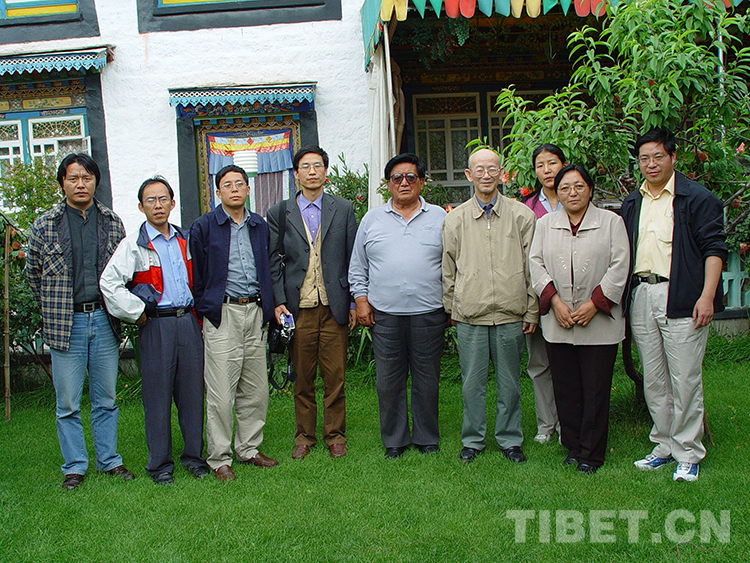 圖為陳慶英先生(右4)帶領(lǐng)課題組成員在西藏調(diào)研期間與西藏社會(huì)科學(xué)院、西藏大學(xué)專家合影 (圖片由張?jiān)铺峁?/p>