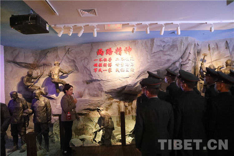 “1959年3月28日,中央政府宣布解散西藏地方政府,徹底砸碎了桎梏西藏上千年的封建農(nóng)奴制,西藏翻開了新的歷史篇章?!痹谥v解員的引導(dǎo)下,該團(tuán)80名青年官兵走進(jìn)西藏百萬農(nóng)奴解放紀(jì)念館,沿著革命先輩的足跡,聆聽著崢嶸歲月里一段段感人至深的紅色故事,2700平方米的展廳中陳列了800多件歷史文獻(xiàn)檔案資糧、文物實(shí)物、圖片和展陳藝術(shù)作品,詳細(xì)介紹了中國共產(chǎn)黨帶領(lǐng)西藏各族人民進(jìn)行偉大的民主改革,使百萬農(nóng)奴翻身得解放的廢奴歷史。